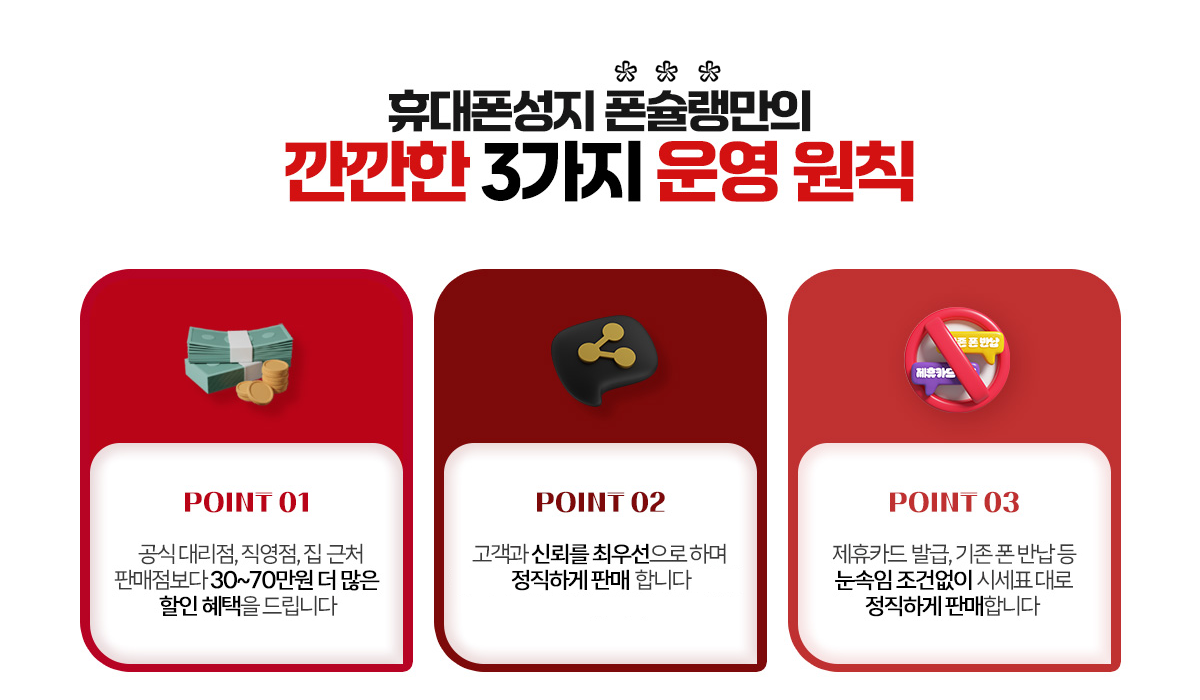 단통법 때문에 동일한 조건으로 개통하는 경우 전국 어디서 구입하든 같은 공시지원금을 받습니다. 매장 보조금은 공시지원금의 최대 15%까지만 가능합니다. '핸드폰 싸게사는법'은 간단하게 표현하면 매장 보조금을 많이 받는 것입니다. 의정부 휴대폰 성지에서는 적게는 30만 원, 많게는 80만 원까지 지원하고 있어서 싸게 살 수 있는 매장입니다. 초보자도 공개된 가격과 조건으로 구입할 수 있어서 더욱 믿을 수 있습니다.